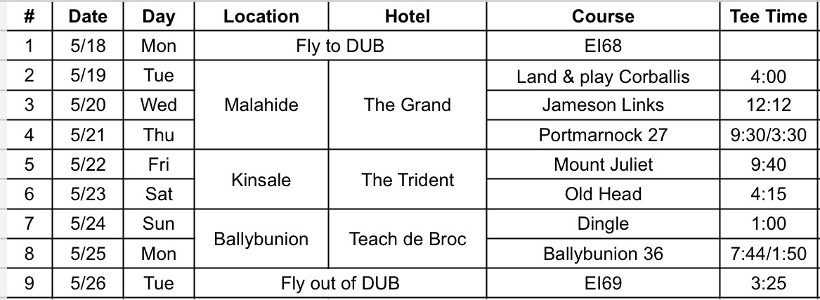 Itinerary